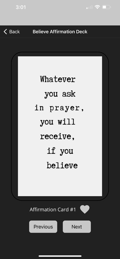 Easy to use FREE Biblical Affirmation App that provides you with a daily affirmation inspired by the power of God's Word along with quick access to powerful affirmations on-demand.